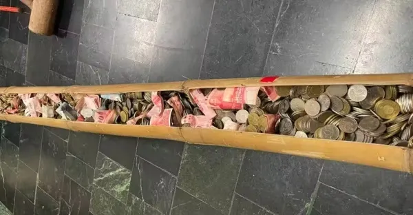 老公把錢存進「160公分竹筒」硬幣紙鈔塞滿滿!「剖開送老婆當禮物」總金額超驚人...😲 #詳情見留言