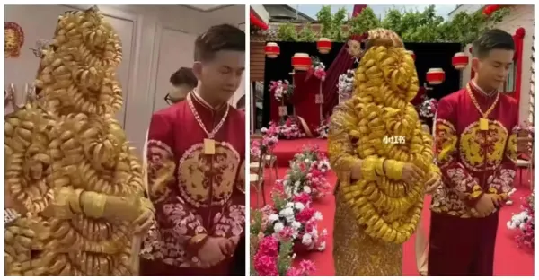 娘家財力超猛!新娘結婚「全身掛滿金手鐲」豪奢畫面超驚人...金飾下真面目好驚豔✨ #詳情看1樓 #真相曝光
