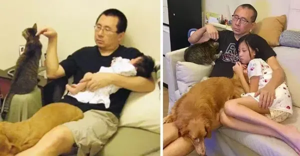 10年前與10年後!媽媽拍下「女兒+2隻萌毛孩」窩爸爸懷中 「一系列溫馨合照」暗藏催淚細節:最好的典範
