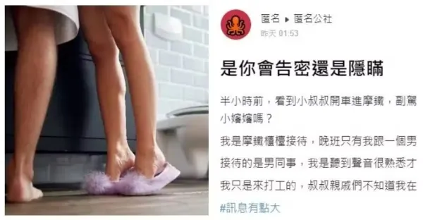 我在摩鐵打工、當櫃台接待,半小時前,看到小叔叔開車進來,副駕卻不是小嬸嬸,我該告密...還是幫忙隱瞞🧐🧐 # 訊息量太大我好怕 # 網友答案一面倒