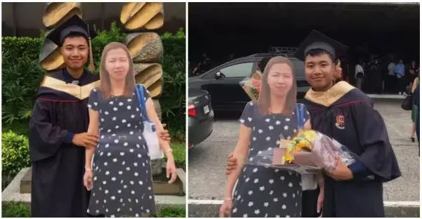 完成媽媽心願!單親媽媽「等不到兒子畢業走了」 他摟著紙板「拍下最感人畢業照」全家入鏡網淚崩