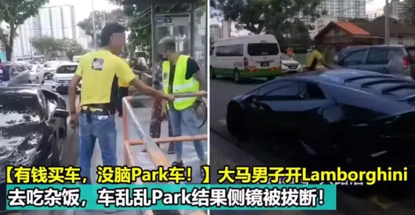【有錢買車,沒腦Park車!】大馬男子開Lamborghini去吃雜飯,車亂亂Park結果側鏡被拔斷!