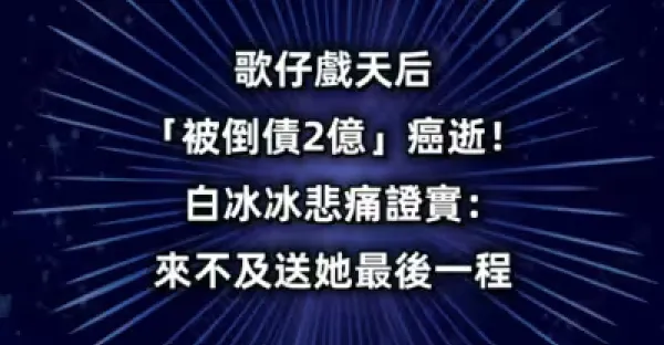 突發/歌仔戲天后「被倒債2億」癌逝!白冰冰悲痛證實:來不及送她最後一程!