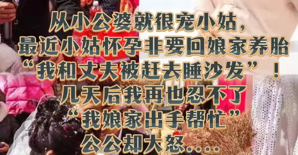 從小公婆就很寵小姑,最近小姑懷孕非要回娘家養胎「我和丈夫被趕去睡沙發」! 幾天後我再也忍不了「我娘家出手幫忙」 公公卻大怒....