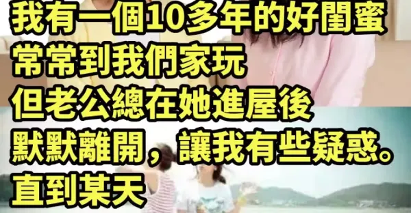 我有一個10多年的好閨蜜,常常到我們家玩,但老公總在她進屋後默默離開,讓我有些疑惑。直到某天,閨蜜突然「蹲下繫鞋帶」,婆婆便把我拉到一旁:「媳婦,以後別讓她來了!」
