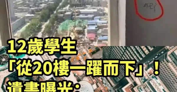 12歲學生「從20樓一躍而下」!遺書曝光「路髒了,抱歉...」父母難接受
