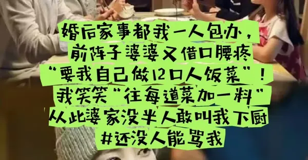 婚後家事都我一人包辦, 前陣子婆婆又藉口腰疼「要我自己做12口人飯菜」! 我笑笑「往每道菜加一料」從此婆家沒半人敢叫我下廚 #還沒人能罵我