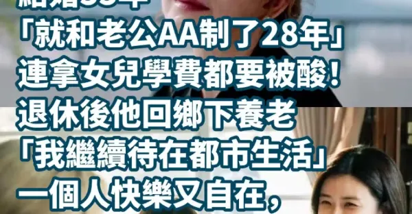 結婚33年「就和老公AA制了28年」連拿女兒學費都要被酸! 退休後他回鄉下養老「我繼續待在都市生活」一個人快樂又自在,最近接到婆婆離世消息「老伴要求我也回他老家」我笑回4個字...