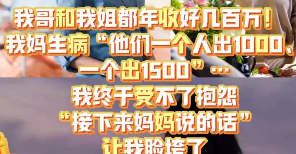 我哥和我姐都年收好幾百萬! 我媽生病「他們一個人出1000、一個出1500」…我終於受不了抱怨「接下來媽媽說的話」 讓我臉垮了