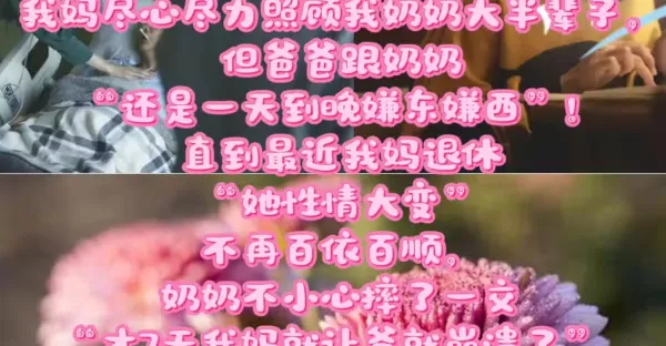 我媽盡心盡力照顧我奶奶大半輩子,但爸爸跟奶奶「還是一天到晚嫌東嫌西」!直到最近我媽退休「她性情大變」不再百依百順,奶奶不小心摔了一跤「才7天我媽就讓爸就崩潰了」 未經他人苦莫勸他人善