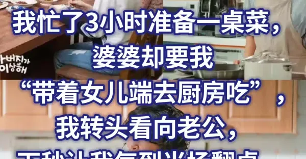 忙了3小時準備一桌菜! 婆婆卻要我「帶著女兒端去廚房吃」 我轉頭看向老公「讓我氣到當場翻桌」