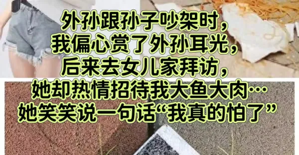 外孫跟孫子吵架時,我偏心賞了外孫耳光,後來去女兒家拜訪,她卻熱情地招待我大魚大肉…她笑笑說一句話「我是真的怕了」