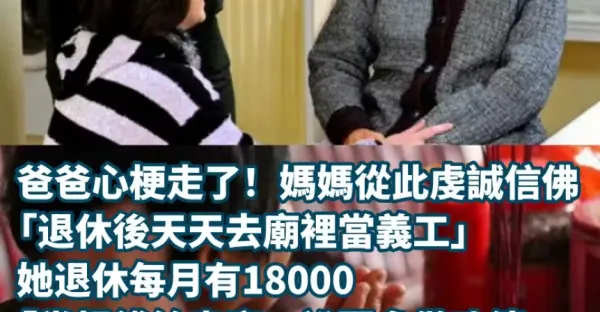 爸爸心梗走了!媽媽從此虔誠信佛「退休後天天去廟裡當義工」,她退休每月有18000「常捐錢給寺廟」說要多做功德... 直到有次她病倒「付醫藥費時我一看她帳戶」當場腿軟