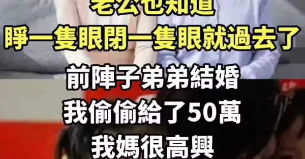 唯一弟弟結婚!「我偷偷給50萬」我媽興高采烈,回家後女兒「對我說一話」我整個人傻了