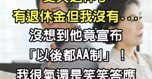 我當家庭主婦30年了! 丈夫退休竟要求「從此和我AA制」 我氣炸但還是笑笑答應「一周後卻換他後悔求我」