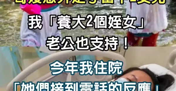 哥嫂意外雙亡留下2女兒!我自己有生個兒子,還是咬牙「一起養大2個侄女」老公也很支持我...今年我摔了一跤住院「她們接到電話的反應」讓我親生兒子看傻