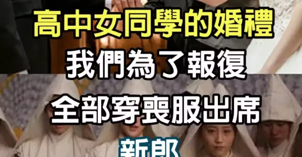 我受邀參加高中女同學的婚禮,我們為了報復全部穿喪服出席,新郎知道後毀了全部