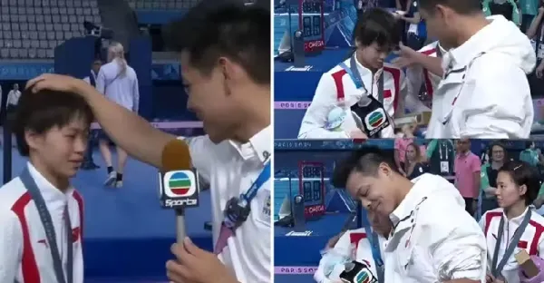 男記者對全紅嬋「摸頭求抱抱」被指「無禮」?網友力撐:請看清楚他是誰!