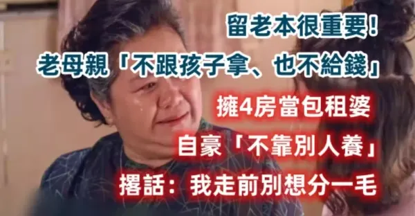 留老本很重要!老母親「不跟孩子拿、也不給錢」擁4房當包租婆 自豪「不靠別人養」撂話:我走前別想分一毛