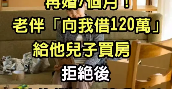 再婚7個月!老伴「向我借120萬」給他兒子買房,我不同意他還打起我房子的主意,再次拒絕後「他開始用行動抗議」 我開始後悔了…