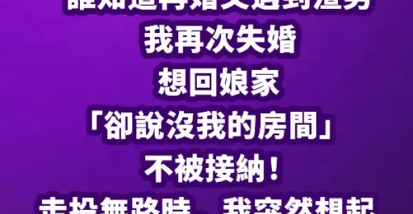 老公出軌又外遇,我帶著女兒失婚了 …誰知道再婚又遇到渣男我再次失婚,想回娘家「卻說沒我的房間」不被接納! 走投無路時,我突然想起「前公公6年前給我的提款卡」 一刷餘額愣在原地~