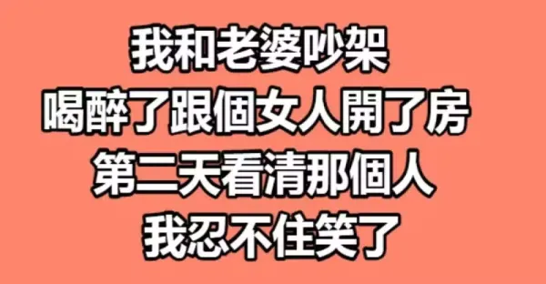 我和老婆吵架,喝醉了跟個女人開了房,第二天看清那個人,我忍不住笑了😊