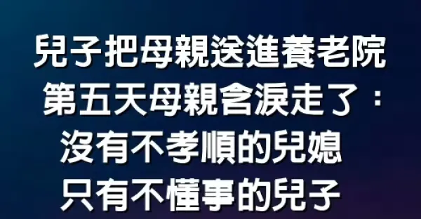 兒子把母親送進養老院第五天,母親含淚走了:沒有不孝順的兒媳,只有不懂事的兒子