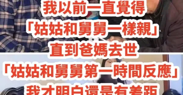 我以前一直覺得 「姑姑和舅舅一樣親」!直到爸媽去世「姑姑和舅舅第一時間反應」我才明白還是有差距
