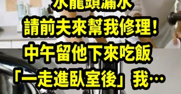 家裡水龍頭漏水請前夫來幫我修理!!中午留他下來吃飯「一走進臥室後」我…