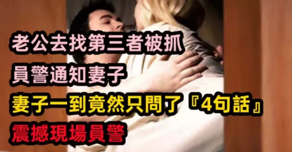 老公去找第三者被抓!!! 員警通知妻子,妻子一到竟然只問了『4句話』震撼現場員警