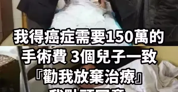 我得癌症需要150萬的手術費 3個兒子一致『勸我放棄治療』我點頭同意 直到他們離開我去找醫生一問愣住了