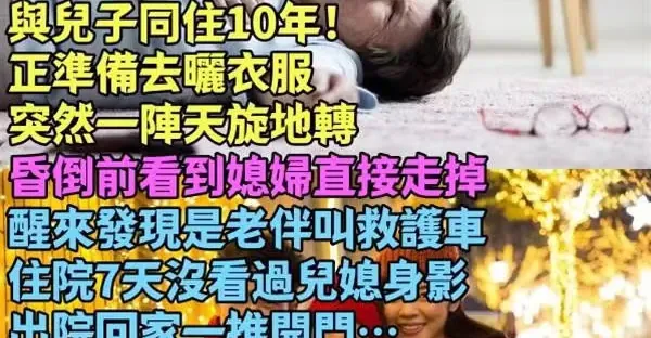 和兒子同住10年!正準備去曬衣服,突然一陣天旋地轉,昏倒前看到媳婦直接走掉,醒來發現是老伴叫救護車,住院7天沒看過兒媳身影,出院回家一推開門… 我眼眶濕了