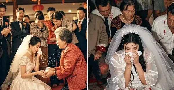 新娘在敬茶時被婆婆潑卸妝水,她當眾擦掉半張臉,全場親戚突然集體下跪