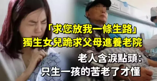 求您放我一條生路!獨生女兒「跪求父母進養老院」老人含淚點頭:只生一孩的苦,老了才懂……