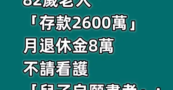 82歲老人遵老伴遺言!2600萬存款+月退8萬,兒子盡孝陪伴,晚年幸福滿滿