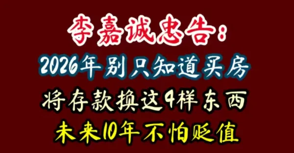 李嘉誠忠告:2026年別只知道買房,將存款換成這4樣東西,未來10年不怕貶值