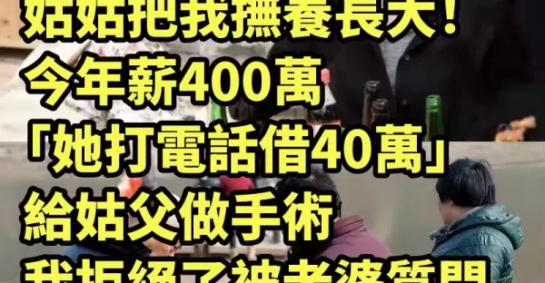 姑姑把我撫養長大 !今年薪400萬「她打電話借40萬」給姑父做手術 我拒絕了被老婆質問「我告訴老婆真相」她沉默了