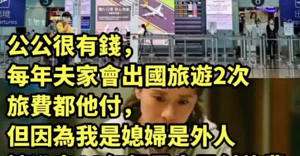 公公很有錢 ,每年夫家會出國旅遊2次、旅費都他付,但因為我是媳婦是外人,嫁進來18年都是自己付旅費,直到聽到婆婆和小嬸對話…決定過年不繳旅費和護照了!