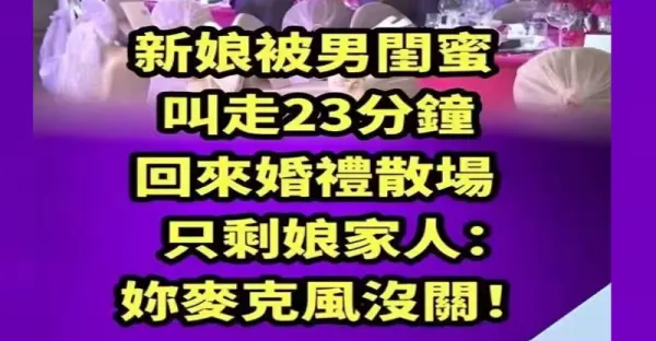 你麥克風沒關!!! 新娘被男閨蜜叫走23分鐘,回來婚禮散場只剩娘家人