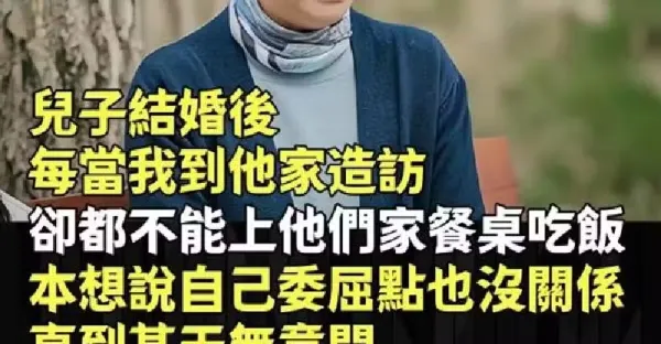 兒子結婚後,每當我到他家造訪,卻都不能上他們家餐桌吃飯,本想說自己委屈點也沒關係。直到某天無意間「看到兒媳婦的碗」,我當晚含淚離開:「做人要有良心!」