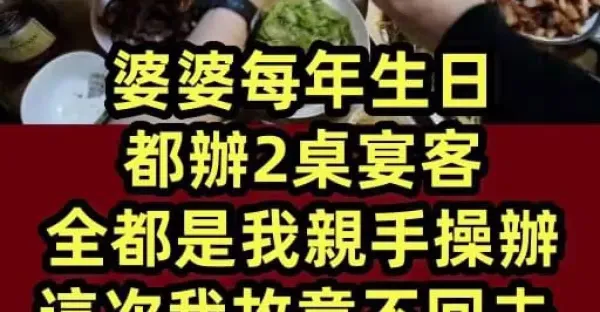 婆婆每年生日都辦2桌宴客,全都是我親手操辦,這次我故意不回去, 結果今天老公回來帶了一樣東西