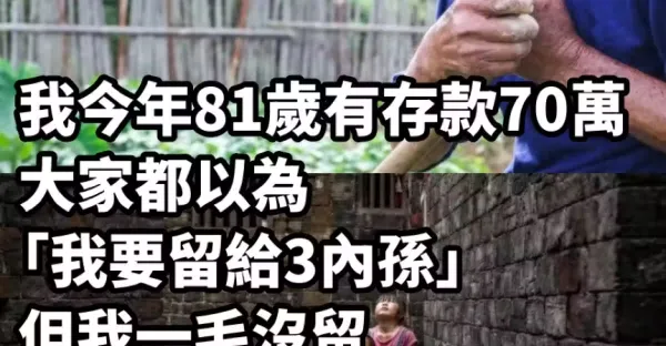 我今年81歲,有存款70萬, 大家都以為「我要留給3內孫」,但我一毛沒留「全送給了外孫」,是我此生做最好的決定