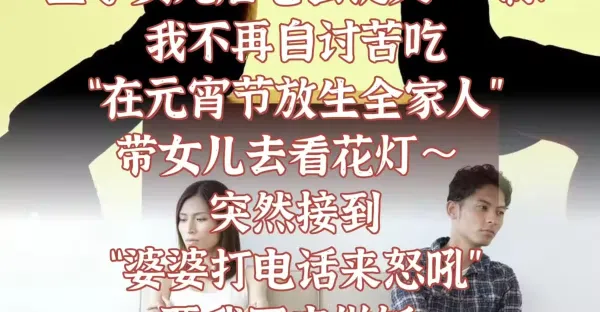 生了女兒後老公提義AA制!我不再自討苦吃「在元宵節放生全家人」帶女兒去看花燈~ 突然接到「婆婆打電話來怒吼」要我回去做飯, 我笑了笑「一開口」婆婆愣住了