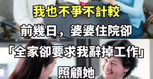 婆家門人人有鑰匙除了我,我也不爭不計較。前幾日,婆婆住院卻「全家卻要求我辭掉工作」照顧她,我「冷靜飄出一句話」全家人慌了…