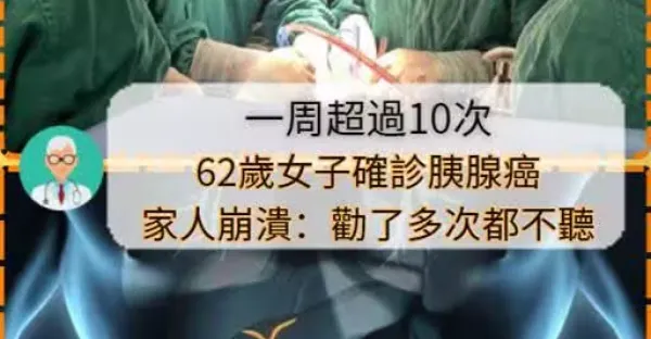 一周超過10次!62歲女子確診胰腺癌,家人崩潰:勸了多次都不聽