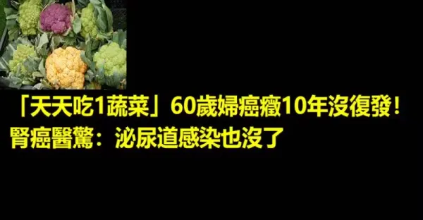「天天吃1蔬菜」60歲婦癌症10年沒復發!腎癌醫驚:泌尿道感染也沒了