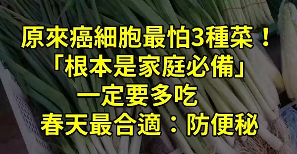 原來癌細胞最怕3種菜!「根本是家庭必備」一定要多吃 春天最合適:防便秘.