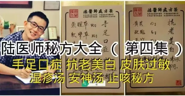 陸醫師秘方大全 (第四集)內有手足口症,抗老美白,皮膚過敏,濕疹湯,安神湯和止咳秘方