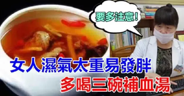要多注意!女人濕氣太重易發胖,多喝三碗補血湯