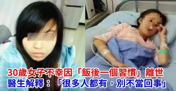 30歲女子不幸因「飯後一個習慣」離世,醫生解釋:「很多人都有,別不當回事」